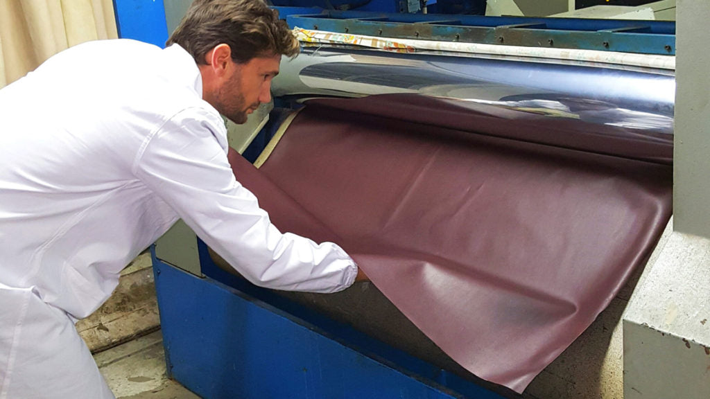 Les bio-huiles et les raisins séchés sont combinés avec des fibres naturelles, ce qui donne un cuir doux et texturé à base de plantes.