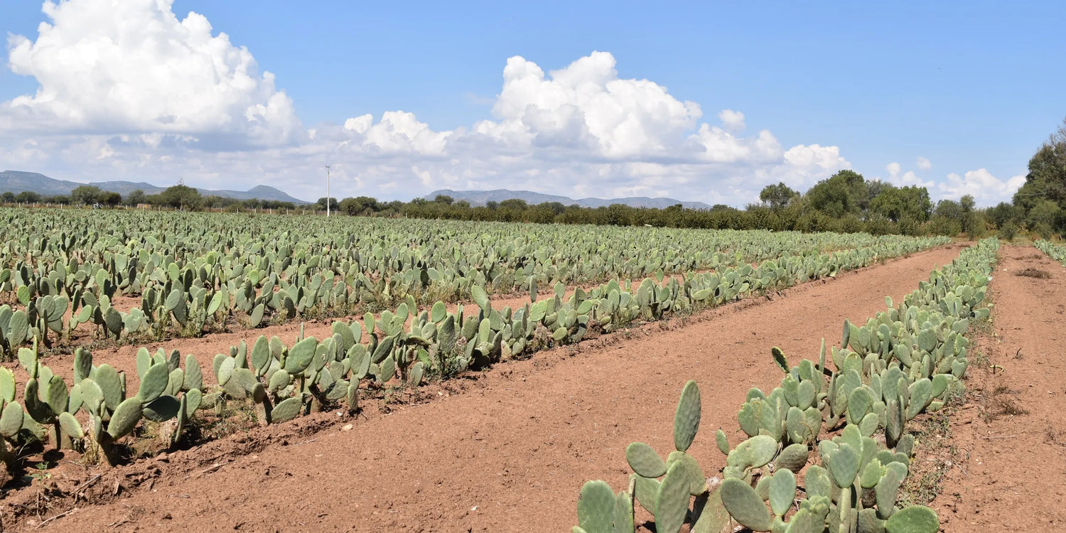 The Nopal cacti are grown using rainwater and no artificial fertilizers. Once mature, the leaves are harvested without damaging the plant so that the cacuts plants can be re-used every 6-8 months.