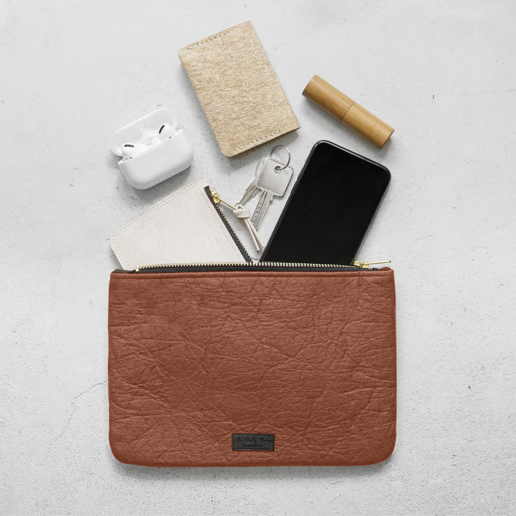 Piñatex pineapple leather is made from fibres extracted from pineapple leaves in the Philippines. The elegant "Original" line is a soft material that features flecks of natural fibre which gives it a natural earthy feel. The Original line is ideal for creating products such as bags, purses, or shoes and has been used by brands such as Nike, Hugo Boss, H&M and Hilton Hotels. You can learn more about how Piñatex is produced here.